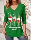 Jul Dam T-shirt Grafisk Jul Vinglas Vintage Stylish Klassisk Långärmad V-hals Vanliga toppar Dagligen Mönster Svart Blå Grön Vår Höst Vinter