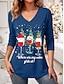 Julens kvinnors t-shirt grafisk tomte vintage mode stilig lång ärm crew neck rund hals vanliga toppar daglig helg tryck svart vinröd blå grön vår höst vinter