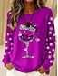 Dam Pullover-tröja Vinglas Aktiv Ledigt Festival Långärmad Rund hals Vanliga toppar Gata Vardag Ledigt Mönster Blå Vin Purpur Grön Vår Höst Vinter