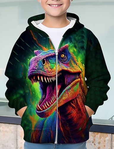 Pojkar 3D Djur Dinosaurie Huvtröja Kappa Ytterkläder Långärmad 3D-tryck Höst Vinter Mode Streetwear Häftig Barn 3-12 år Utomhus Ledigt Dagligen Normal