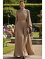 A-linje Golvlång Kvälls klänningar Elegant Silkig Långärmad Hög hals Formell Bröllop Ficka Elastisk chiffong med Plisserat Veckad 2025
