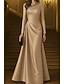A-linje Golvlång Telång Cocktailklänningar Kvälls klänningar Festklänningar Elegant Silkig 3/4 ärm Rund hals Formell Bröllop Ficka Stretchig satäng med Glitter 2025
