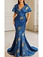 Sjöjungfru / trumpet Golvlång Kvälls klänningar Elegant Silkig Kortärmad Drottning Anne Formell Bröllop Ficka Nylon med Blomtryck 2025