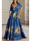 A-linje Golvlång Kvälls klänningar Balklänning Formell klädsel Elegant Vintage Kortärmad V-hals Formell Bröllop Ficka Satäng med Blomtryck 2025