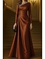 A-linje Golvlång Kvälls klänningar Balklänning Formell klädsel Elegant Silkig Kortärmad Över axeln Formell Bröllop Ficka Satäng med Rosett(er) 2025