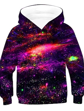 Pojkar 3D Galax Huvtröja Långärmad 3D-tryck Höst Vinter Aktiv Grundläggande Barn 2-12 år Skola Utomhus Dagligen