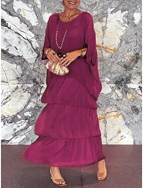 Dam Midiklänning A linjeklänning Sommarklänning Ledigt Dagligen Lös passning Slät 3/4 ärm Rund hals Blå Gul Rodnande Rosa Fuchsia Sommar Vår