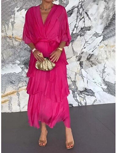 Kvinnors maxi klänning a-linje klänning enfärgad sommarklänning volang klänning avslappnad daglig vanlig passform grafisk halvärmad v-hals rosa marinblå blå fuchsia sommar
