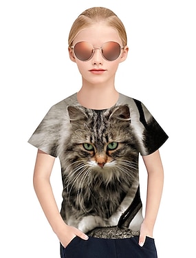 Pojkar 3D Katt T-shirt Kortärmad Sommar Vår Mode Grundläggande Barn 4-12 år Rund hals Utomhus Ledigt Dagligen Normal