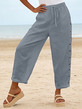 Dam Cotton Långbyxor Sommarbyxor Strandbyxor Semester Mode Ledigt vardag Ankellång Hög midja Slät Elastisk midja Sidoknapp Lättvikt Bekväm Andningsfunktion Oelastisk Streetwear Strand Helgdag Bl
