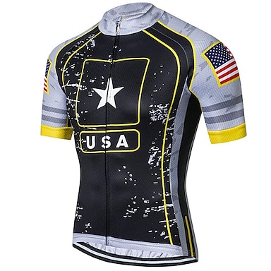 Herr Cykeltröja Geometrisk Bokstav & Nummer Kortärmad Cykel T-shirt Tröja med 3 bakfickor Bergscykling Snabb tork Anatomisk design Uppsugande Andningsfunktion sporter Svart Grå Kläder