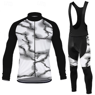 Herr Cykeltröja med shorts Kortärmad Bergscykling Vägcykling Vit Grå Cykel Träningsdräkter 3D Tablett Andningsfunktion Snabb tork Bakficka Polyester Elastan sporter Bokstav & Nummer Kläder
