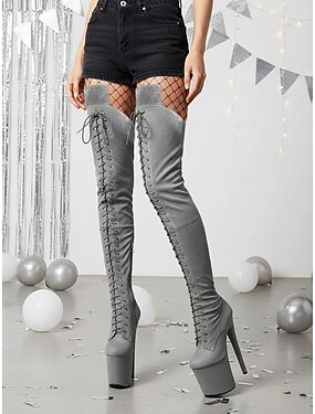 damplatåskor med snörning över knäna - högklackade poledance-lårhöga stövlar för nattliv och fest