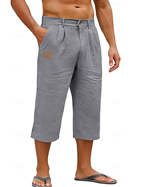 Herr Linne Byxor Capribyxor Sommarbyxor Ficka Elastisk midja Slät Komfort Andningsfunktion Vadlängd Dagligen Utomhus Strand Semester Mode Blå 다크 카키 Microelastisk