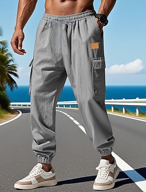 Herr Joggare Linne Byxor Långbyxor Sommarbyxor Strandbyxor Snörning Elastisk midja Släpp grenen Slät Dagligen Gym Streetwear Ledigt Hiphop Lös passning Svart Vit