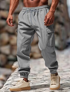 Herr Militärbyxor Linne Byxor Långbyxor Sommarbyxor Casual byxor Snörning Elastisk midja Flera fickor Slät Komfort Andningsfunktion Fullängd Ledigt Dagligen Helgdag Semester Mode Svart Vit
