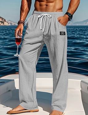 Herr Linne Byxor Långbyxor Sommarbyxor Strandbyxor Ficka Snörning Elastisk midja Slät Komfort Andningsfunktion Semester Dagligen Helgdag Hawaiisk Boho Svart Beige