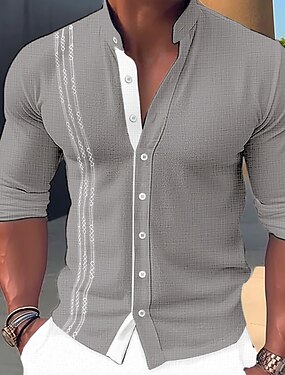 Herr Skjorta linneskjorta Guayabera skjorta Bandkrageskjorta Sommarskjorta Standkläder Slät Semester Curise Svart Vit Blå Grön Kortärmad Krage Sommar Kläder