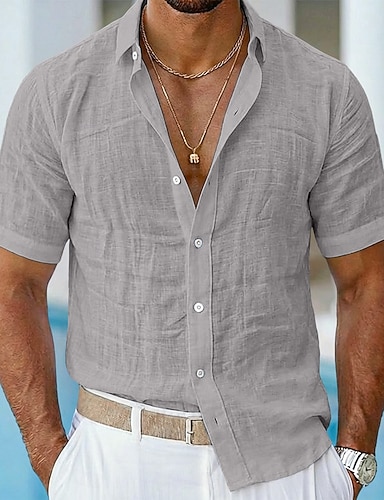 Herr Skjorta linneskjorta Guayabera skjorta Sommarskjorta Strandskjorta Slät Semester Gata Svart Vit Marinblå Grå Kortärmad Vik-över krage Vår & sommar Kläder Splitsa