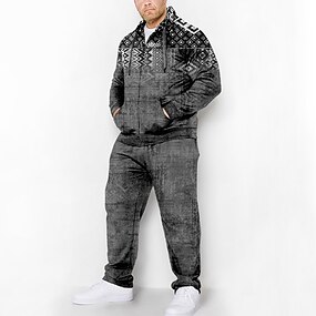 Herr Grafisk Tecknat Abstrakt 2st 3D-tröja set Träningsoverall Huvtröjor Långärmad Långa byxor Huva Streetwear Sportkläder Grundläggande Sport & Utomhus Ledigt Sport Mönster Vår Höst Grå