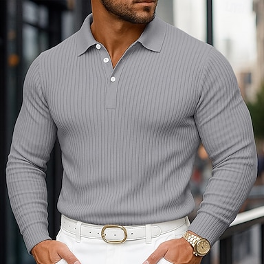 Herr Ribbstickad topp Strukturerad Gata Ledigt Kavajslag Långärmad Grundläggande Modern Slät Vertikala remsor Knappar Vår Höst Alla årstider Smal passform Vit Blå Marinblå Grå Ribbstickad topp
