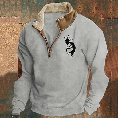 Herr Tröja Kvartströja med dragkedja Svart Marinblå Brun Grå Halv dragkedja Färgblock Stam Lappverk Sport & Utomhus Dagligen Helgdag Polyester Vintage Grundläggande Etnisk Höst vinter Kläder Pull