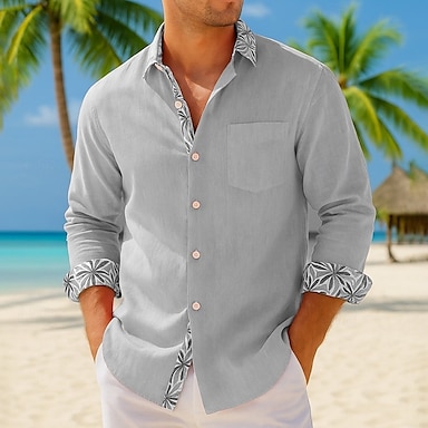 Herr Skjorta linneskjorta Strandskjorta Tro Utomhus Semester Svart Vit Rodnande Rosa Blå Långärmad Kavajslag Vår & Höst Kläder Mönster