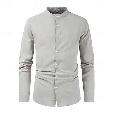 Herr Skjorta Linneskjorta Sommarskjorta Standkläder Knapp upp skjorta Slät Semester Curise Svart Vit Blå Beige Kortärmad Hög krage Sommar Kläder