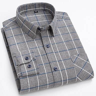 Herr Skjorta Casual skjorta Rutig skjorta Knapp upp skjorta Övertröja Rutiga skjortor Rubinrött Blå Grön Khaki grön Grå Långärmad Slät Nedvikt Semester Helgdag Ficka Kläder Bomull Bomullsblandning