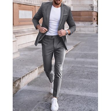 Herr Kostymer Bröllop Blå Svart Vår, Höst, Vinter, Sommar Kostym Trubbig Affär Formell Solid färg Skräddarsydd passform 2 delar set Singelknäppt 1 Knapp