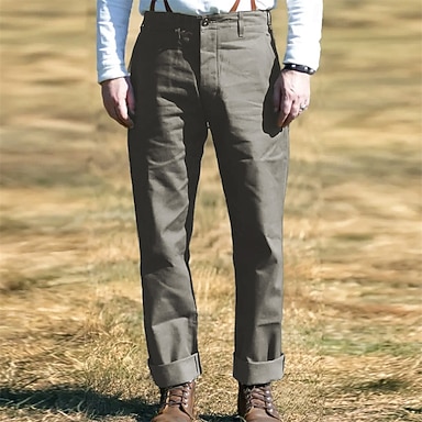 Herr Kostymbyxor Långbyxor Kinesiska Ficka Slät Andningsfunktion Utomhus Bröllop Företag Ledigt Retro / vintage Klassisk gurkmeja Svart Elastisk