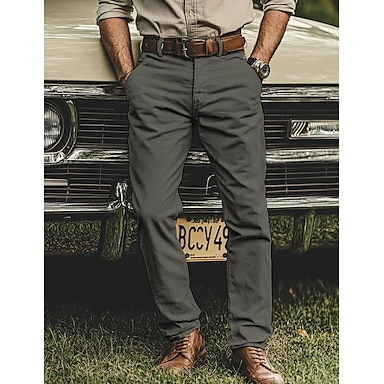 Herr Långbyxor Kinesiska Chino byxor Casual byxor Knappar Framficka Slät Komfort Mjuk Företag Dagligen Utekväll Mode Streetwear Ljus kaki Svart Microelastisk