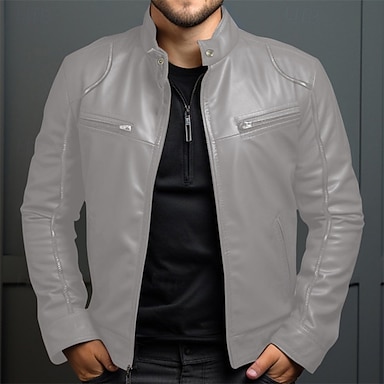 Herr Imitationsläderjacka Bikerjacka Motorcykeljacka Semester Dagligen Vindtät Håller värmen Ficka Vår Höst Slät Mode Klassisk Hög krage Normal Svart Grå Jacka