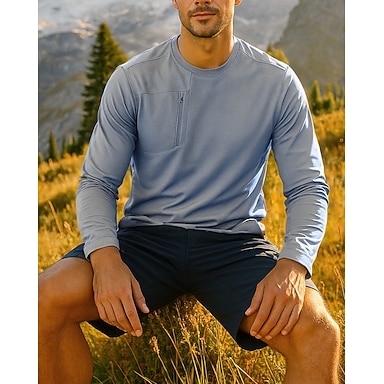Herr Vandringsskjorta Pullover-tröja Vandringstopp Långärmad Rund hals T-shirt Överdelar Utomhus Snabb tork Lättvikt Andningsfunktion Vår Höst Polyester Svart Marinblå Grön Tennis Golf Löpning