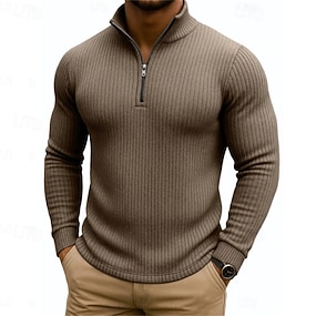 Herr Pikétröjor Quarter Zip Polo Dagliga kläder Datum Fjärdedels blixtlås Långärmad Mode Grundläggande Slät Dragkedja Vår Höst Normal Marinblå Purpur Grön Grå Ljusblå Pikétröjor