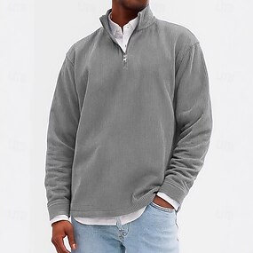 Herr Våffelpikétröjor Strukturerad Ledigt Utomhus Blixtlås Fjärdedels blixtlås Långärmad Mode Modern Ensfärgat Strukturerad Stickat Vår & Höst Alla årstider Slapp form Svart Mörkgrön Purpur Khaki