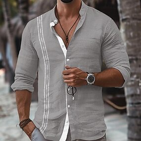 Herr Skjorta Sommarskjorta Standkläder Knapp upp skjorta Ljusrosa Svart Rodnande Rosa Himmelsblå Mörkgrå Långärmad Randig Krage Semester Fest Kläder Mode Fritid Hawaiisk