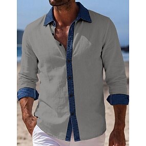 Herr Skjorta Linneskjorta Sommarskjorta Standkläder Strandskjorta Knapp upp skjorta Färgblock Semester Helgdag Blå Svart Vit Rodnande Rosa Långärmad Nedvikt Sommar Vår Kläder Lappverk