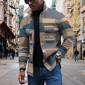 Herr Lutning Geometri Etnisk Skjorta Skjorta jacka Övertröja Långärmad Mode Streetwear Designer Utomhus Ledigt Dagligen Höst vinter Nedvikt Mönster Blå Grön Kaki Grå