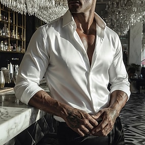Herr Skjorta Silkesliknande Satinskjorta Casual skjorta Slät Dagligen Semester Svart Vin Marinblå Guld Långärmad Skorstenskrage Vår Vår & Höst Kläder Rynkad