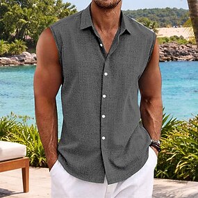 Herr Skjorta Linneskjorta Sommarskjorta Standkläder Knapp upp skjorta Ärmlös tröja Ensfärgat Ledigt Semester Blå Svart Vit Rodnande Rosa Ärmlös Nedvikt Sommar Vår Kläder