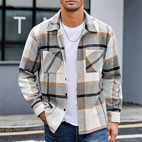 Herr Skjorta Flanellskjorta Övertröja Rutig Utomhus Gata Svart Rubinrött Orange Brun Långärmad Vinter Vår & Höst Kläder
