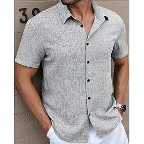 Herr linneskjorta Sommarskjorta Strandskjorta Kortärmad Mode Casual Semester Helgdag Standkläder Sommar Vår Krage krage skjortor Främre en ficka Mörk marin Blå Grön Grå