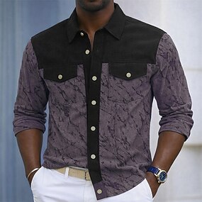Herr Skjorta Casual skjorta Manchesterskjorta Knapp upp skjorta Svart Vit Marinblå Blå Purpur Långärmad Nedvikt Utomhus Gata Kläder Vintage Ledigt