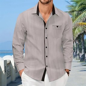 Herr Skjorta Sommarskjorta Casual skjorta Strandskjorta Knapp upp skjorta Vit Marinblå Khaki grön Grå Långärmad Slät Kavajslag Semester Hawaiisk Ficka Kläder 100 % bomull Mode Ledigt Bekväm