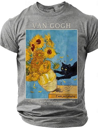 Herr Van Gogh Solrosor Rolig Svart Kattkonst Parodi Grafisk T-shirt Impressionistisk Stil Kattälskare Gåva Smiling Edition Kortärmad Casual T-shirt Designerkläder S M L XL XXL XXL