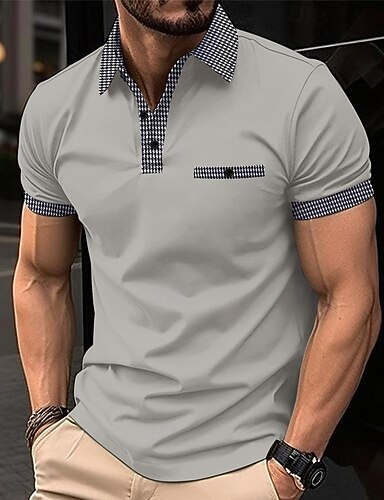 Herr Golftröja Golf pikétröjor Arbete Ledigt Kavajslag Kortärmad Grundläggande Modern Färgblock Hundtandsmönster Lappverk Vår & sommar Normal Svart Vit Röd Marinblå Blå Beige Golftröja