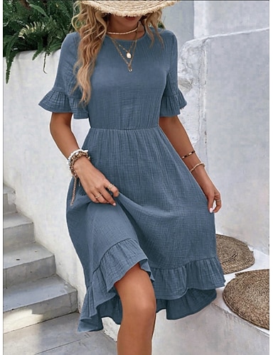 Dam Knälång klänning Vardagsklänning Peplum klänningar Elegant Mode Modern Utomhus Semester Utekväll Normal Slät Kortärmad Rund hals Blå Grön Grå Ljusblå Sommar Vår