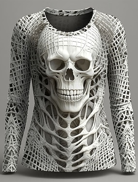 Dam T-shirt Grafisk Dödskalle Mode Casual Lång Ärmm Crew Neck Rund Hals Regular Topp Daglig Helgtryck Röd Blå Grön Grå Sommar Vår Höst Vinter