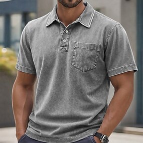 Herr Pikétröjor Tvätta skjorta i 100 % bomull Ledigt Företag Nedvikt Kortärmad Mode Grundläggande Ensfärgat Ficka Knappar Sommar Vår Blå Mörkgrön Mörkbrun Svart Rodnande Rosa Purpur Pikétröjor
